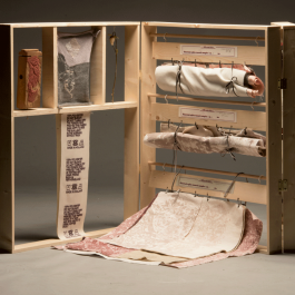 Replica project of William Morris wood block textile print design, Rose & Thistle, by only using the color scheme of white. Research had begun on the pure interest in William Morris design, but then by realising the complicated process of the woodblock printing, natural dye, and discharge print led the research to go further to the recognition of the anonymous workers in the textile industry, and the contrast between flowers in real world and perfected floral motifs in designed products.
